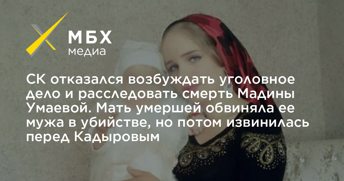 СК отказался возбуждать уголовное дело и расследовать смерть Мадины Умаевой. Мать умершей обвиняла ее мужа в убийстве, но потом извинилась перед Кадыровым
