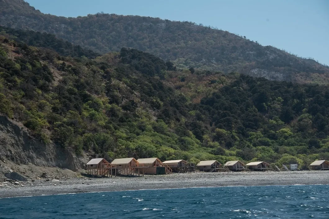 Глэмпинг — это 10 сборно-разборных палаток на троих, которые находятся на территории первой лагуны, частично принадлежащей заповеднику. Стоимость проживания за две ночи на ближайшие даты в конце сентября составляет 9 тысяч рублей. Всего, по словам руководства заповедника, на охраняемой территории могут постоянно находиться до 30 человек.