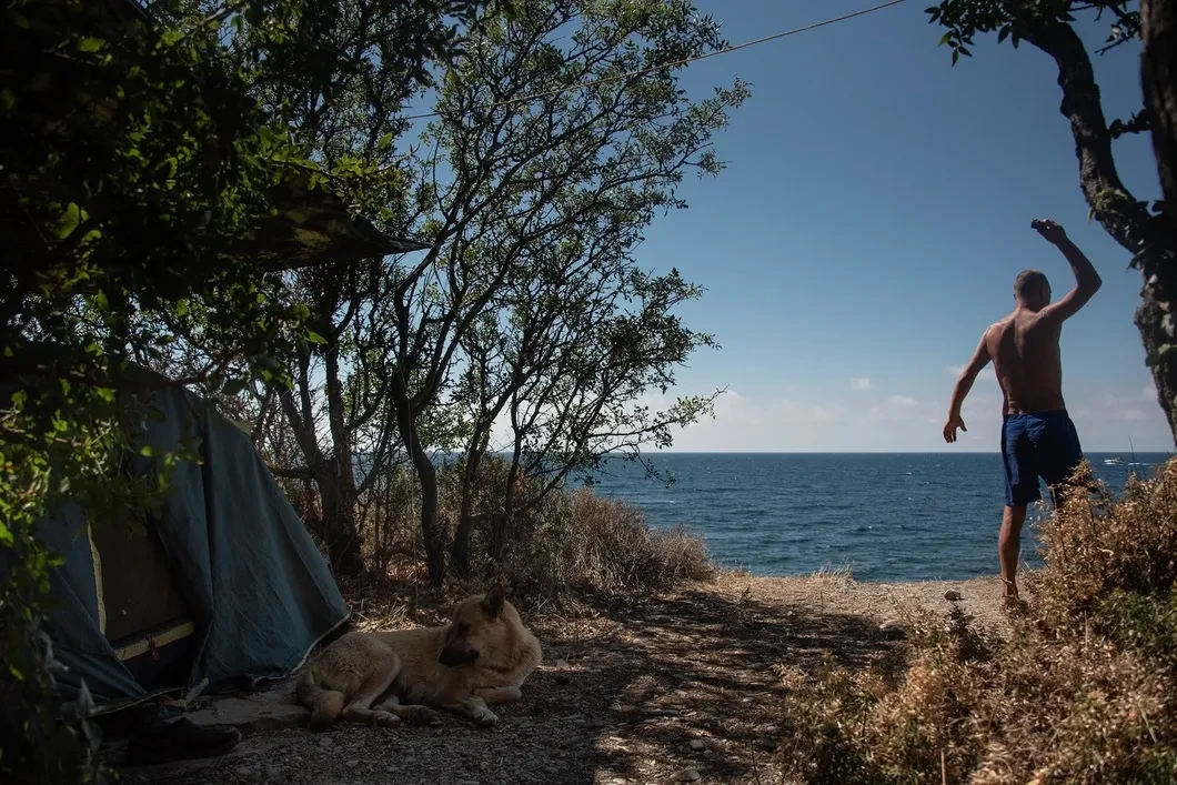 К нам присоединяется Лера, 19-летняя девушка-пацанка с белыми «тоннелями» в ушах, в вытянутых пыльных трениках и красной кепке. Лера рассказывает, что ушла из дома в 14 лет из-за семейных проблем и отправилась путешествовать по Черноморскому побережью. По дороге встретила парня с огромным рюкзаком, который и привел ее на Утриш. «Здесь я выросла и повзрослела», — говорит Лера. Сейчас она живет в Петербурге. Узнав о пожаре, уволилась с работы в пекарне и приехала на Утриш автостопом — спасать лес.