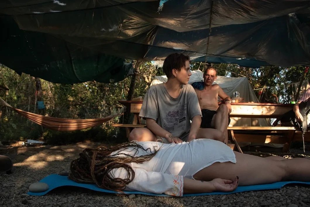 Чем можно заниматься на Утрише? Высыпаться, гулять по лесу, загорать, купаться на нудистском пляже, медитировать, сидя на горячих камнях, ходить на йога-поляну. Утришане учат друг друга массажным практикам, гимнастике, игре на гитаре. В прошлом году сюда приезжала девушка из Франции, которая преподавала французский.