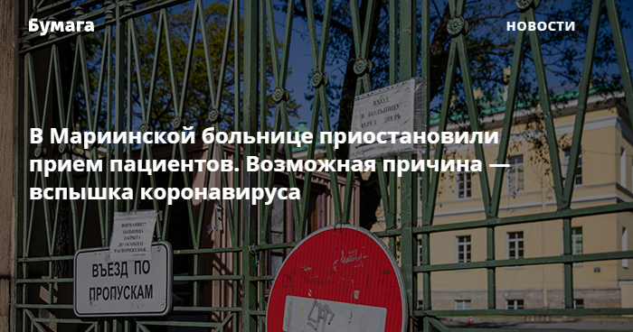 Два источника в Мариинской больнице подтвердили «Бумаге», что стационар приостановил прием пациентов и ждет решения Роспотребнадзора в течение суток.