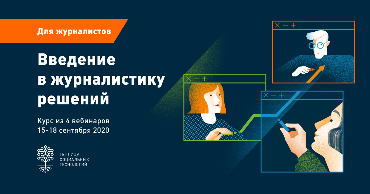 Команда Теплицы социальных технологий приглашает журналистов и других профессионалов медиарынка на мини-курс «Введение в журналистику решений». Онлайн-курс пройдет с 15 по 18 сентября 2020 года.