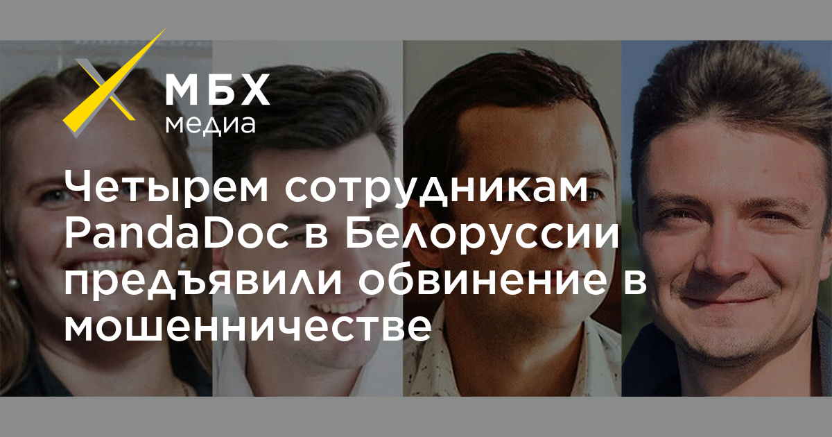 Четырем сотрудникам IT-компании PandaDoc — главному бухгалтеру Юлию Шардыко, директору Дмитрию Рабцевичу, менеджеру по продукту Виктору Кувшинову и HR-менеджеру Владиславу Михолапу предъявлено обвинение мошенничестве, совершенном организованной группой либо в особо крупном размере (часть 4 статьи 210 УК Белоруссии). Об этом сообщили «МБХ медиа» в компании со ссылкой на адвоката Антона Гашинского.