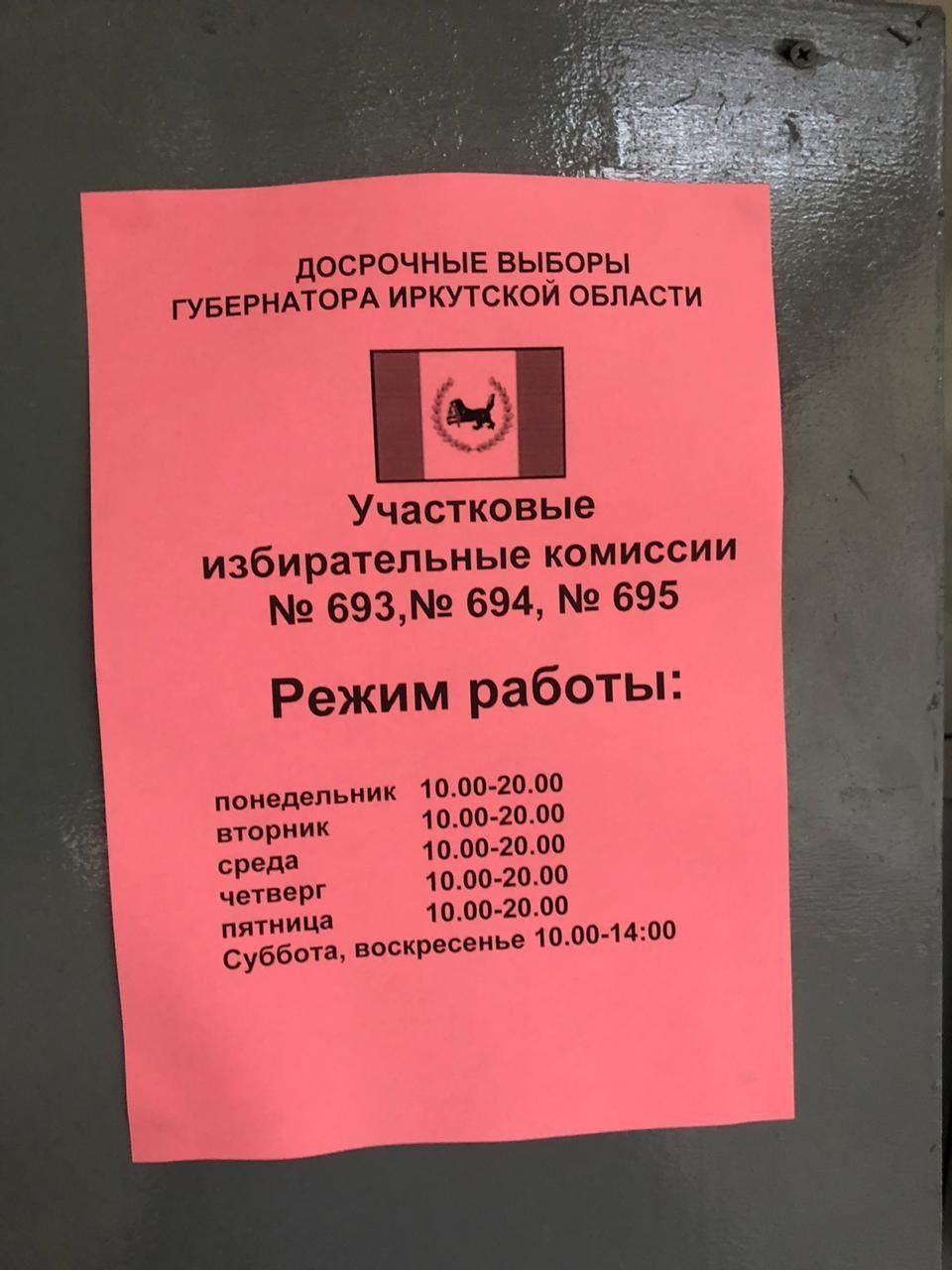 09:28 Кандидат в губернаторы Иркутской области Михаил Щапов рассказал о нарушении при досрочном голосовании на избирательных участках №№ 693, 694, 695 и 727 (Иркутск). Там наблюдателей уведомили о неверном графике работы комиссий (с 10:00 до 20:00 в будние дни, и с 10:00 до 14:00 часов в субботу и воскресенье). Участки все три дня работают с 08:00 до 20:00.