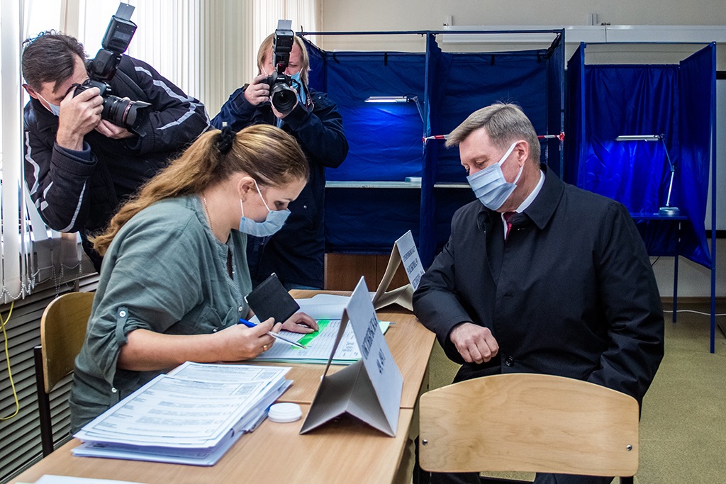 13:24 Мэр Новосибирска Анатолий Локоть проголосовал на выборах депутатов горсовета и регионального заксобрания. Ранее во время общения с журналистами политик упомянул, что «готов потратить на это обеденный перерыв».