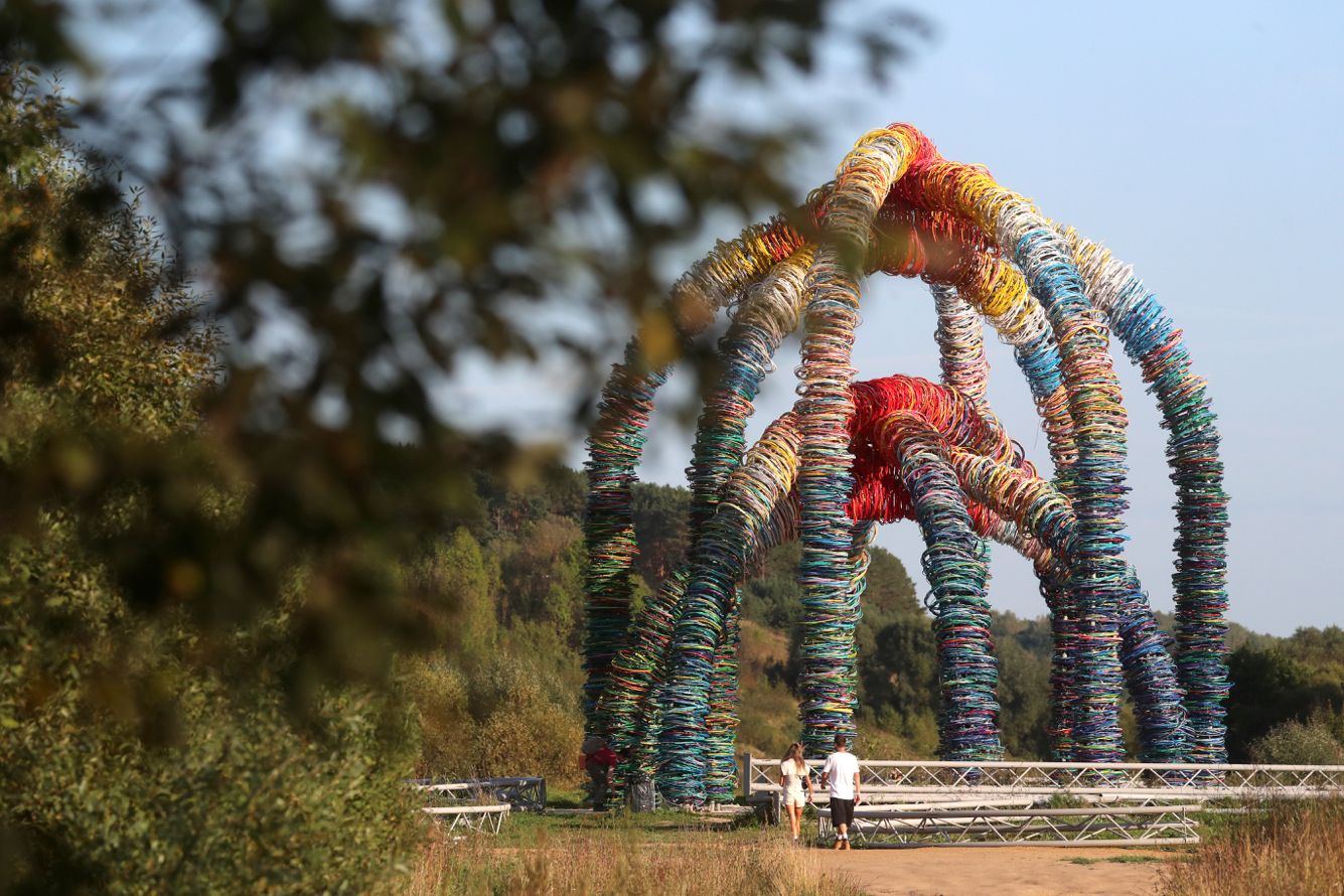 Фестивалю «Архстояние», который проходит в арт-парке «Никола-Ленивец» под Калугой, исполнилось 15 лет. Все эти годы приглашенные архитекторы и художники осваивали берега реки Угры, окрестные поля, леса и села. Несмотря на дальнюю дорогу, этот ежегодный праздник собирает тысячи горожан. «Архстояние» сегодня — это не только лэнд-арт, но и перформансы, спектакли, вечеринки. Но главное на фестивале — все же объекты. Рассказываем о десяти самых интересных достопримечательностях парка, появившихся там благодаря «Архстоянию».