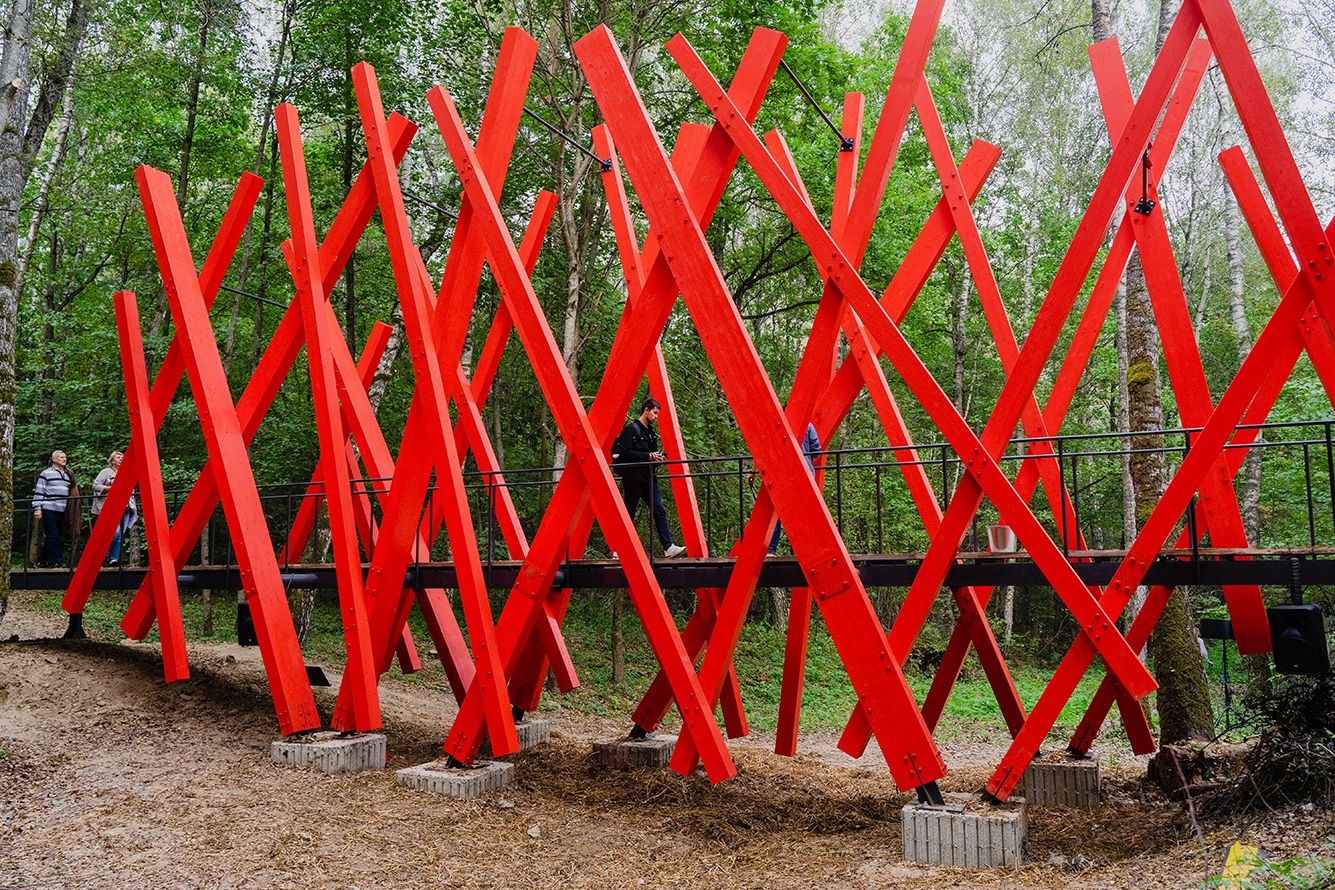 Практичные проекты в парке редки, но «Красный лес», построенный Шелковским при поддержке московского музея AZ — исключение. Мост перекинут через овраг как раз на пути к «Арке» — весной там ужасная грязь. Это хоть и самая большая, но не первая прикладная работа художника: в последние годы из его мастерской выходили керамические вазы и деревянные кресла.