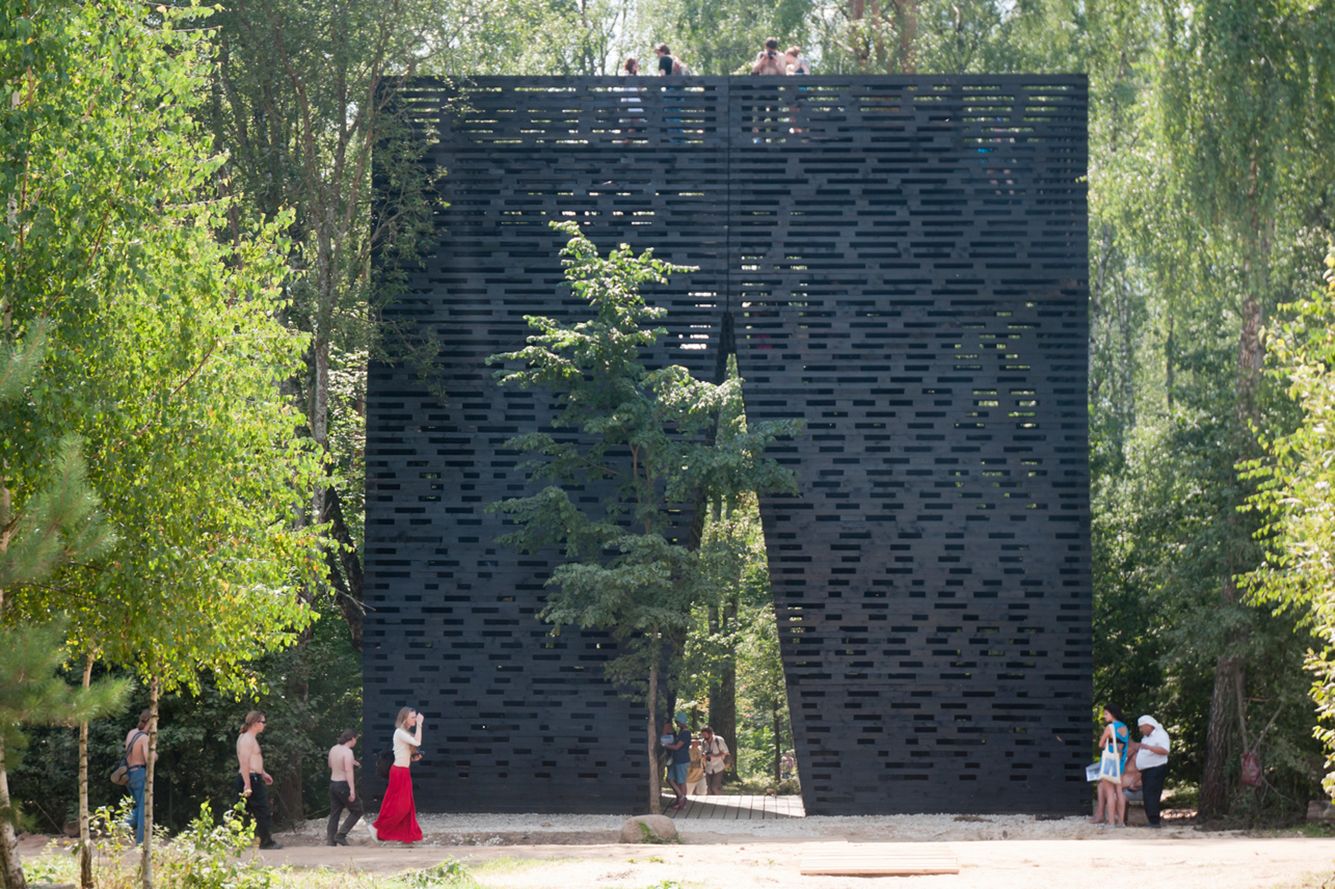 Адаптировать архитектурные архетипы к новому, природному контексту — фирменный прием «Архстояния». В 2012 году возле главной дороги парка выросла черная триумфальная арка. Ее проектировали создатели сколковского «Гиперкуба» — архитектор Борис Бернаскони со своей командой.