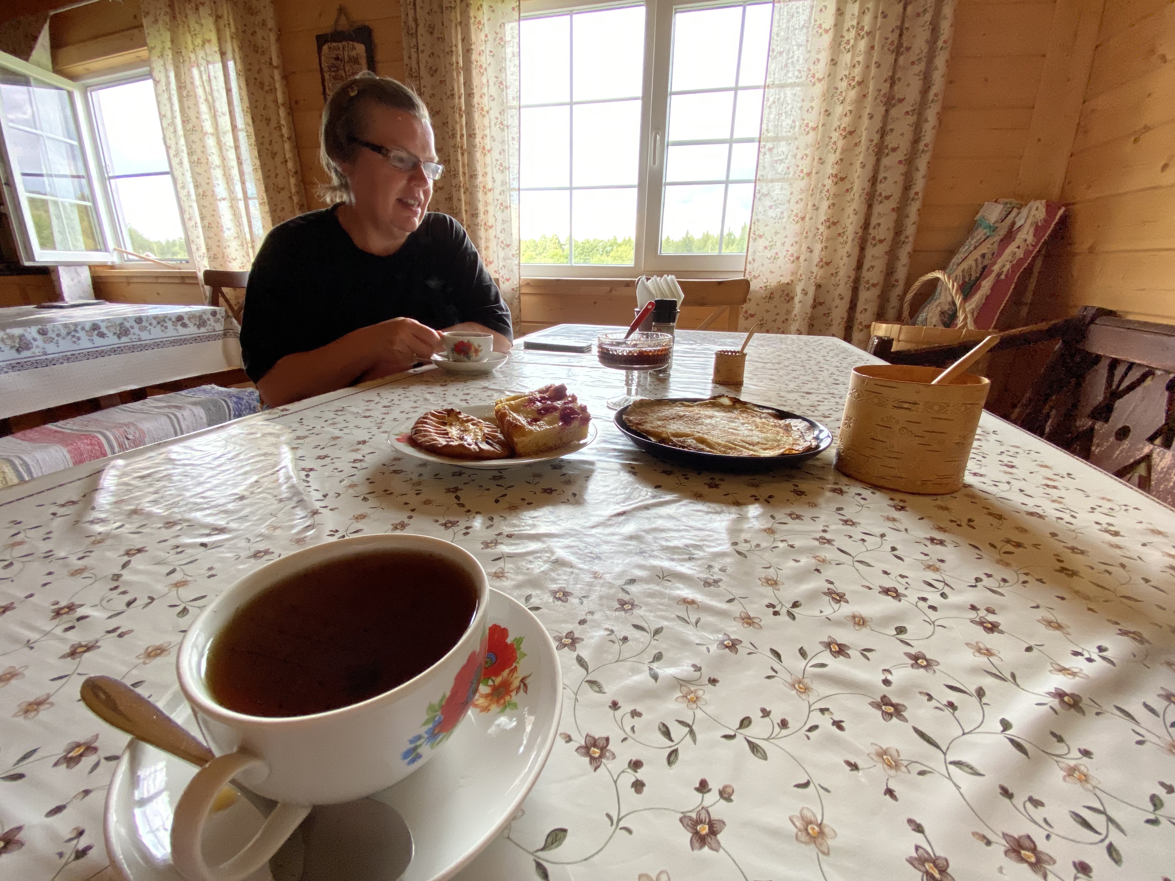 Погрузиться в Кинерму – это не только посмотреть на дома снаружи, а зайти в часовню, зажечь свечку и постоять в полутьме под иконами, переночевать в старом доме, сходить в баню по-черному, посидеть на лавочке и насладиться тишиной, отведать простой, но вкусной домашней карельской еды, пообщаться с хозяевами. И только после этого делать выводы. У тех, кому повезло "погрузиться", эмоции и отзывы совсем другие. Кто-то благодарит хозяев коротко и эмоционально: "Благодаря вам и вашей семье, продолжает жить удивительная Кинерма! Благодаря вам, Карелия навсегда в наших сердцах!" Кто-то посвящает Кинерме длинные подробные блоги: "Да, здесь нет вайфая и магазинов, здесь не будет привычных современных условий быта с люксовыми номерами, но здесь есть душа и тепло, которым обволакивает с первых шагов по кинермским тропинкам. Здесь что-то настоящее и искреннее".