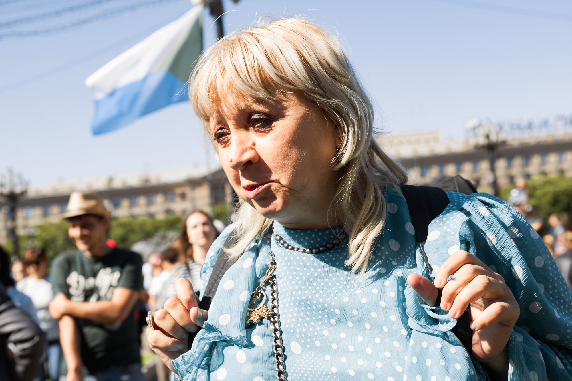 – А я немного с другой стороны смотрю, – снова подключается к разговору дама, представившаяся Александрой. – Я приехала из Владивостока, поддержать гражданскую активность, которая у нас все больше вне закона. Я не знаю Фургала, но приезжаю, так как вижу единство народа. У нас же как? Приходит кто-то к власти, и все, кажется им, что мы без них пропадем. И у Путина, хоть я его и поддерживаю в чем-то, единоначалие затянулось. А так у нас сплошные гонения. Я работала преподавателем в вузе, на кафедре самолетостроения и вертолетостроения. Так я Путину вопрос задавала: почему у нас не развивается самолетостроение? Строят их, а они не летают, а остальные импортные. Но нас не слышат. Меня вот, в том числе и за политическую позицию, уволили в этом году. И вот тут я готова вместе с людьми орать хоть "Свободу Фургалу" – может, так нас услышат?
