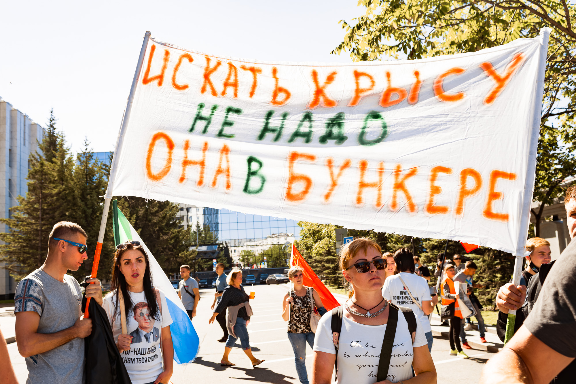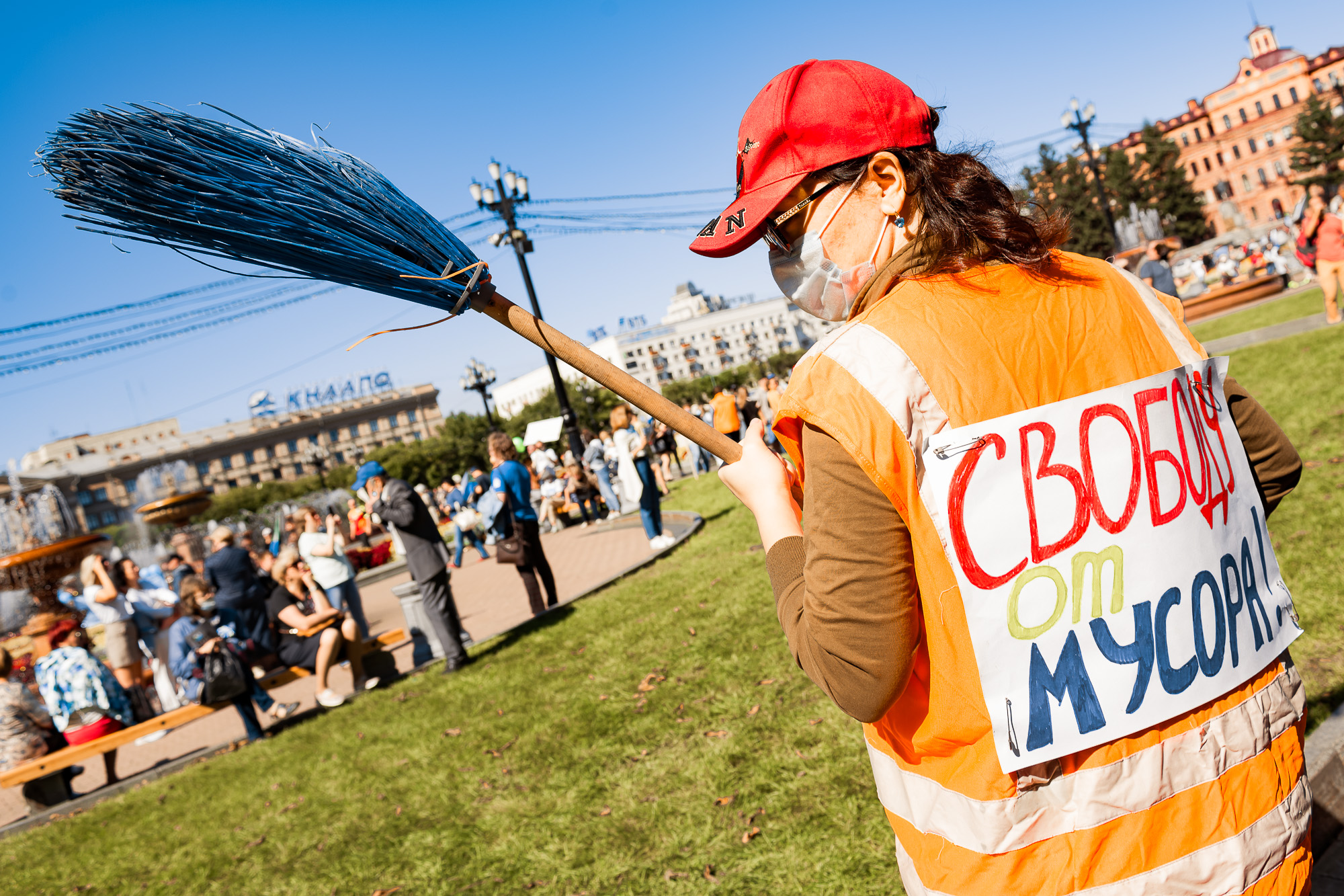 – Ходить мы не прекратим, большая часть людей останется, костяк вот такой, как сейчас, – объясняет хабаровчанка Вера. На митинг она пришла в образе дворника – с метлой и в спецовке. На спине надпись "Против мусора". – Те, кто и не присоединится, будут пристально наблюдать. Силы-то у всех разные. У людей школа началась, кружки, так что в будни и выходят меньше. Но если что-то такое произойдет, то, конечно, опять все выйдут. Это уже не остановить. И даже если Путин приедет, то что он может нам сказать? Ему и сказать-то нечего. Я же не просто так – против мусора. В первую очередь против мусора политического. Каким, к слову, стал и наш президент. Его тоже надо менять.