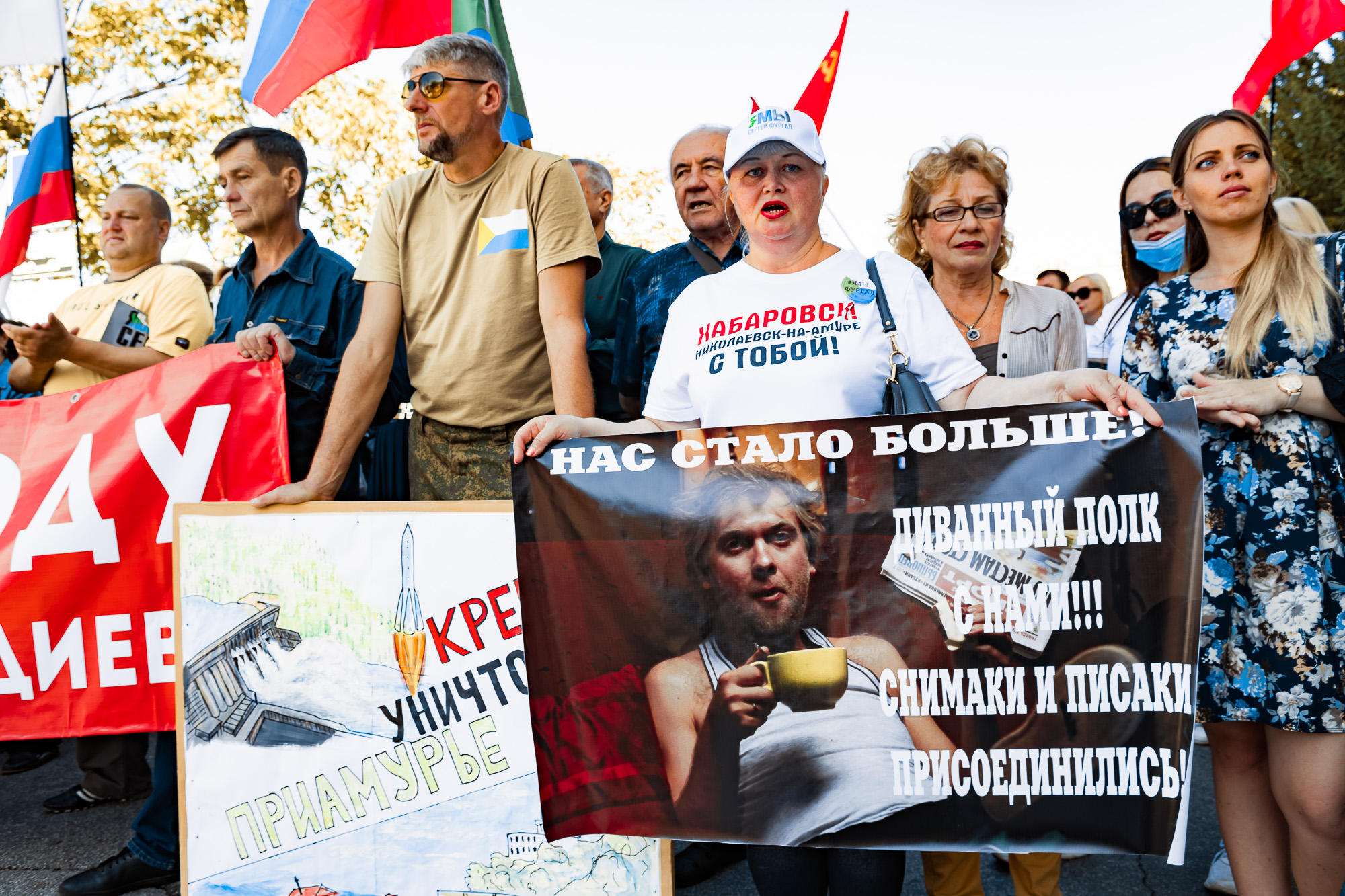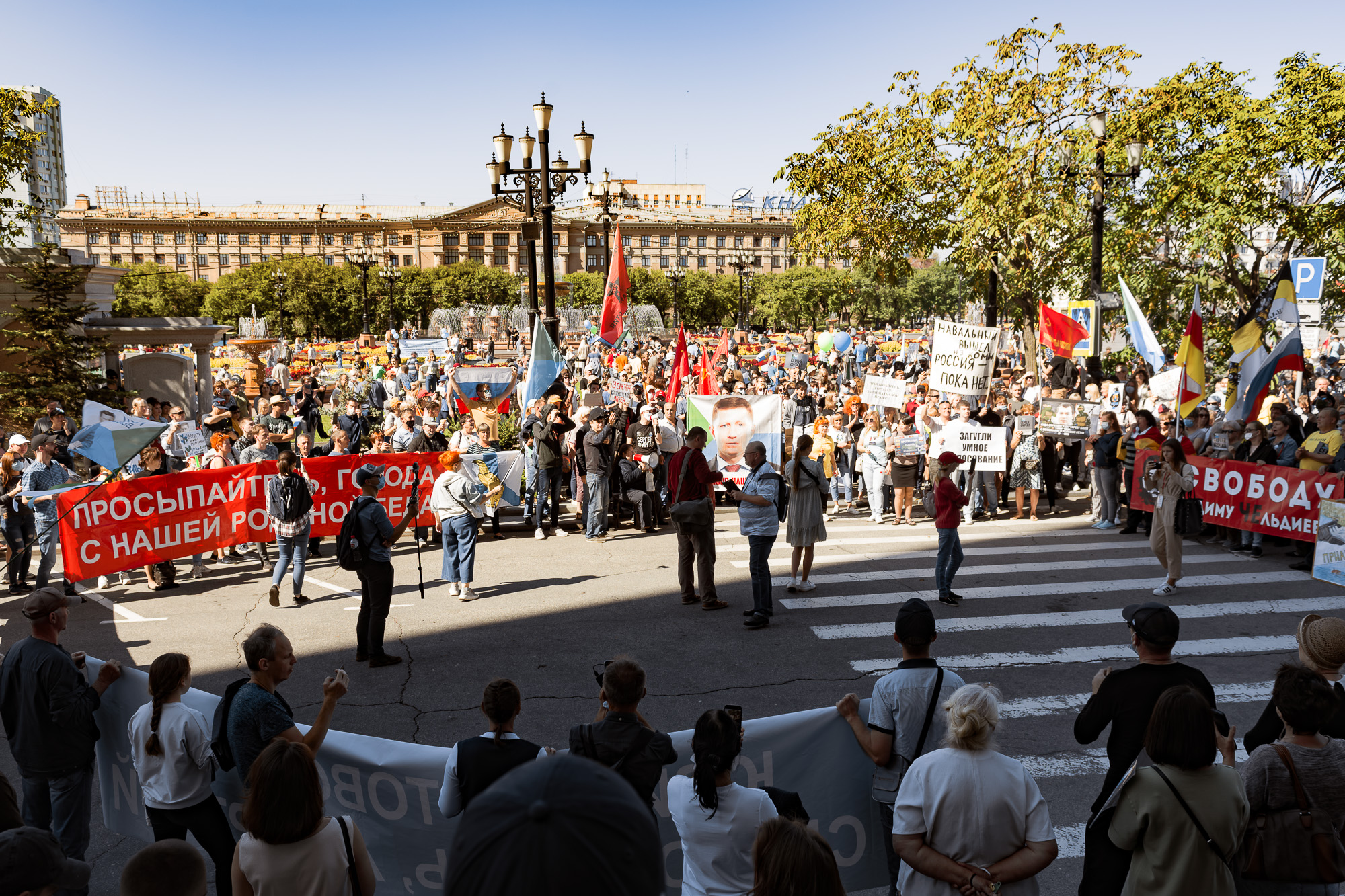 Десятую субботу подряд жители Хабаровска выходят на митинги в поддержку бывшего губернатора Сергея Фургала. Акции конца августа – начала сентября не столь многочисленны, как месяц-полтора назад: есть ощущение, что выходят теперь самые стойкие и убежденные в своей правоте.