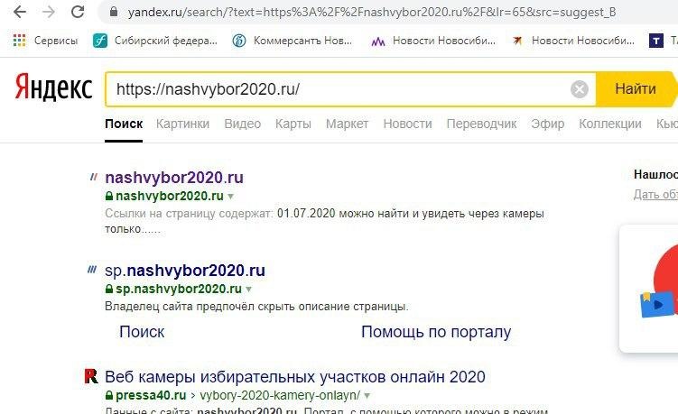 Официальный сайт видеотрансляций (nashvybor2020.ru) с избирательных участков, в том числе в Новосибирской и Иркутской области не индексируется основными поисковыми системами. На это обратил внимание читатель Тайги.инфо.