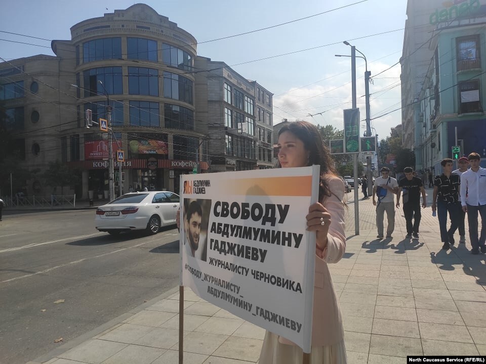 Близкие и коллеги дагестанского журналиста Абдулмумина Гаджиева, арестованного по обвинению в финансировании терроризма, в очередной раз собрались в центре Махачкалы, чтобы выразить свое несогласие с действиями силовиков.