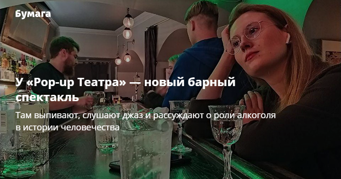 — Нам очень нужны ритуалы, от самых простых, как кофе с круассаном, до торжественных и даже религиозных. Но с ритуалами происходит такая странная штука — со временем они перестают работать. И общество придумывает новые. Так сложилось, что бары стали важной частью питерского ритуала. А мы усиливаем эту мифологию, объединяя барную и театральную культуру.