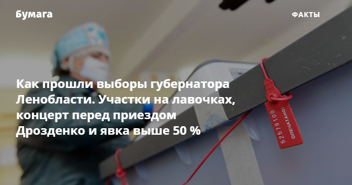 В Ленинградской области 13 сентября завершились трехдневные выборы губернатора. С результатом в 83,61 % победил действующий глава региона Александр Дрозденко. Наблюдатели фиксировали на выборах различные нарушения, но в Ленизбиркоме подтвердили только одно из них.