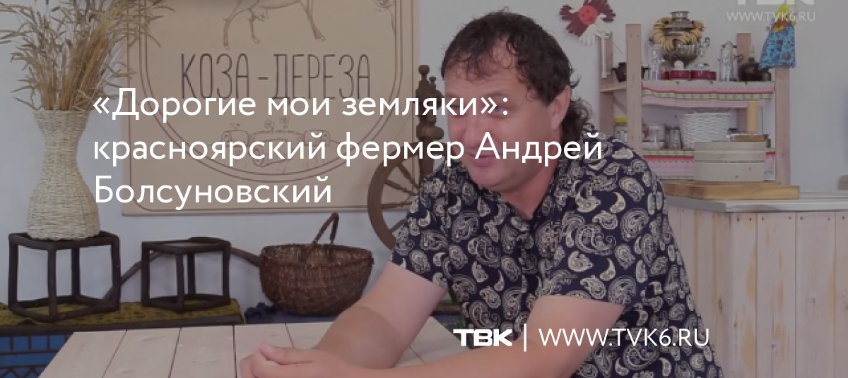 Героем проекта Натальи Кечиной «Дорогие мои земляки» стал глава крестьянского фермерского хозяйства «Коза-Дереза» и член общественной палаты Красноярска Андрей Болсуновский.