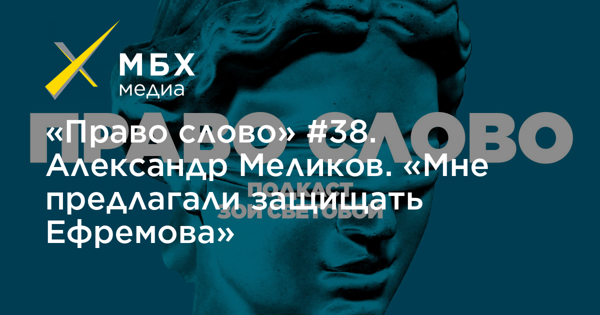 МБХ медиа · Александр Меликов. «Мне предлагали защищать Ефремова» Слушайте также на ВК | Apple Podcasts | Castbox | Яндекс. Музыке и на других платформах.