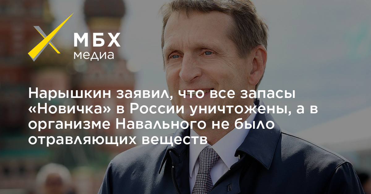 Нарышкин заявил, что все запасы «Новичка» в России уничтожены, а в организме Навального не было отравляющих веществ