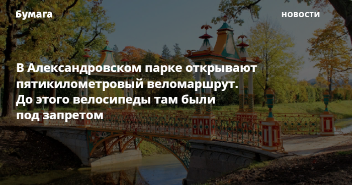 В Александровском парке в музее-заповеднике «Царское Село» 16 сентября откроется велосипедный маршрут. Об этом сообщается на странице музея во «ВКонтакте».