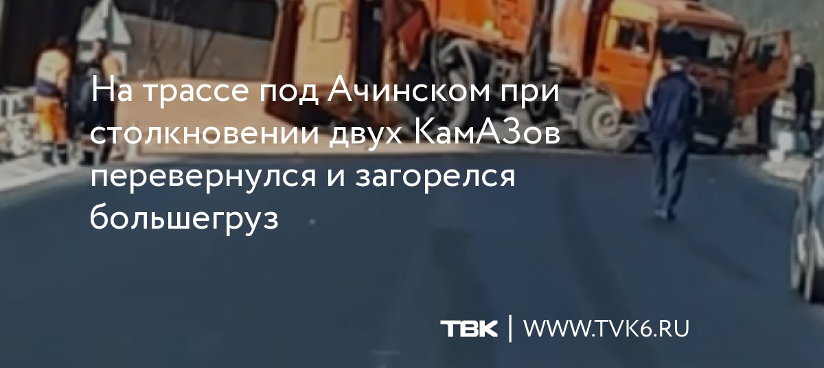 На трассе под Ачинском при столкновении двух КамАЗов перевернулся и загорелся большегруз