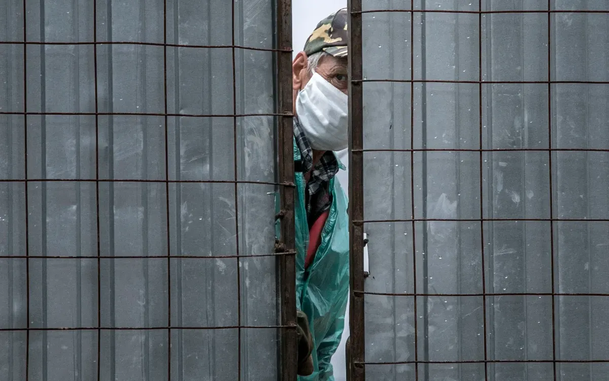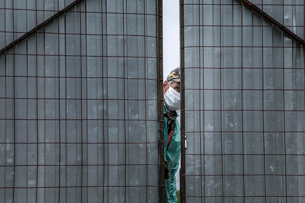 Подходим к стройке, я смотрю сквозь щелку в заборе. С той стороны на меня смотрит мужчина в красной куртке и джинсах. Он был здесь 26 августа, когда задерживали Сергея. Через щелку и начинаем разговор. Прошу рассказать, что случилось в тот день.