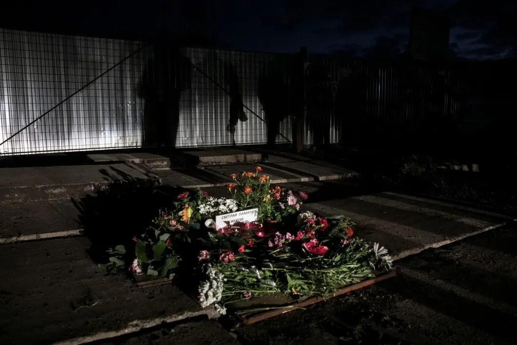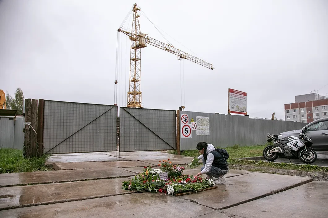 Народный мемориал установили прямо напротив входа на стройплощадку, но раз за разом кто-то демонстративно его отодвигает на обочину. Активисты — жители близлежащих домов и сочувствующие им — раз за разом возвращают его на место.