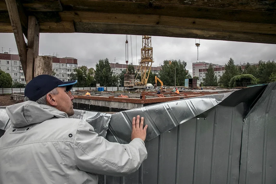 Сергей Пахолков был одним из тех, кто не давал протестам затихнуть. Четыре месяца неравнодушные вологжане выходили к забору, на месте которого раньше были зеленые деревья и пруд, а теперь нависает огромный башенный кран. Он парит прямо над территорией детского сада (новый детсад решили строить прямо по соседству со старым).