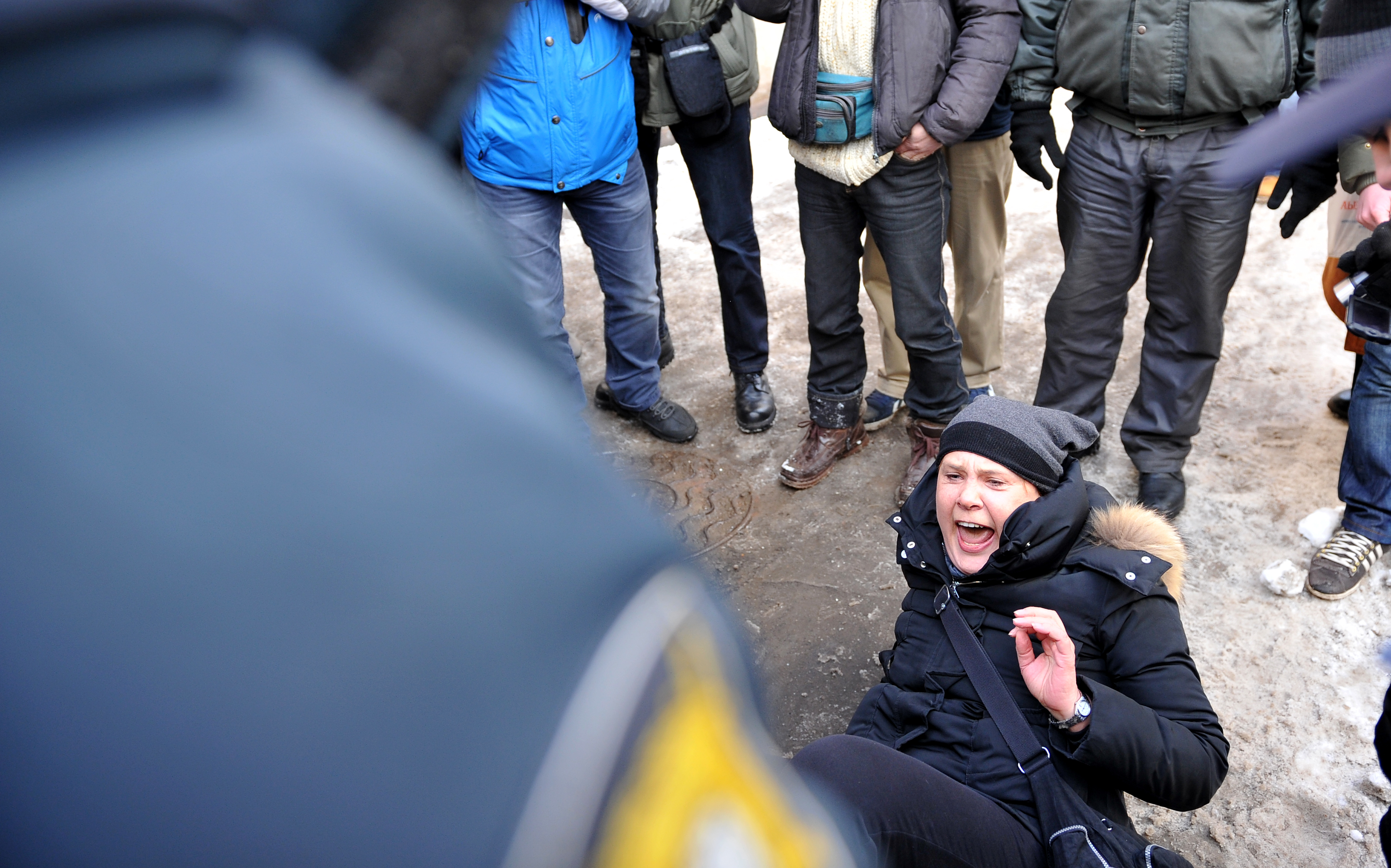 Татьяна Догилева во время акции против сноса исторического здания по адресу: Большой Козихинский переулок, дом 25.Фото: Рамиль Ситдиков / РИА Новости