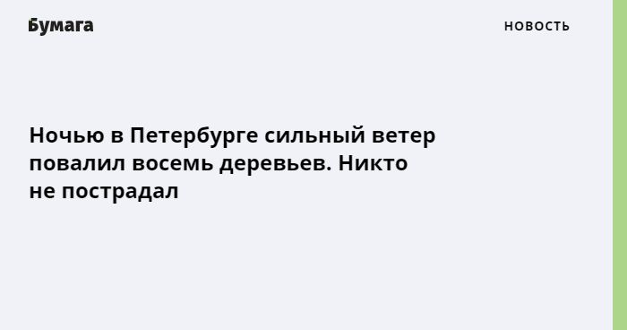 В ночь на 18 сентября в Петербурге сильный ветер повалил восемь деревьев и повредил кровли двух зданий. Об этом сообщает ТАСС со ссылкой на МЧС.
