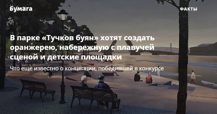 Парк «Тучков буян» на участке у Биржевого моста построят по проекту петербургской «Студии 44», которая занималась реконструкцией Главного штаба. На территории хотят разместить прогулочные зоны, оранжерею, набережную с плавучей сценой и детские площадки. «Бумага» рассказывает о деталях проекта и первой реакции горожан.