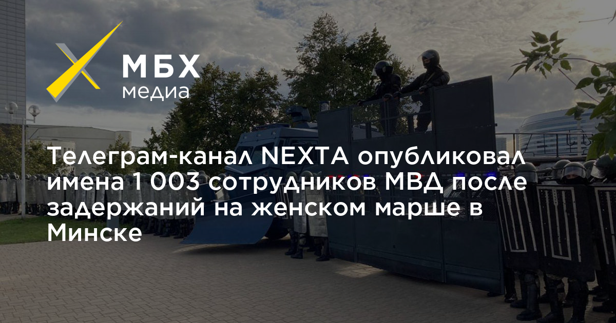 Телеграм-канал NEXTA опубликовал список с 1 003 именами сотрудников белорусского МВД после того, как на субботнем женском марше в Минске прошли массовые задержания.