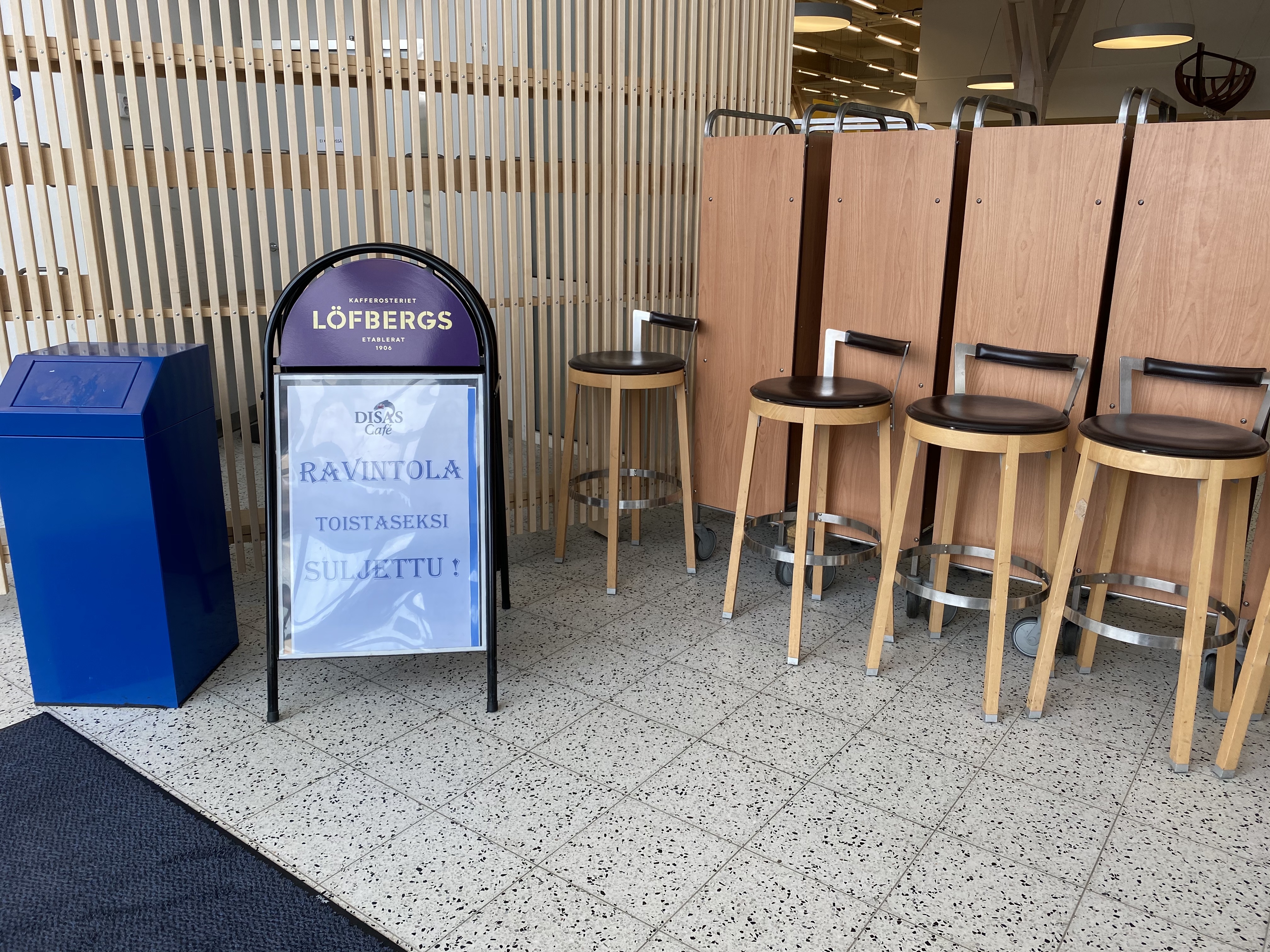 Сейчас тут пустая парковка, закрытое кафе, опустевший магазин. На прилавках все также висят ценники о скидках на пять головок сыра или шесть упаковок зубной пасты. Но желающих покупать почти нет. Редкие финны заходят за свежим или копченым лососем, в целом же количество покупателей резко сократилось.