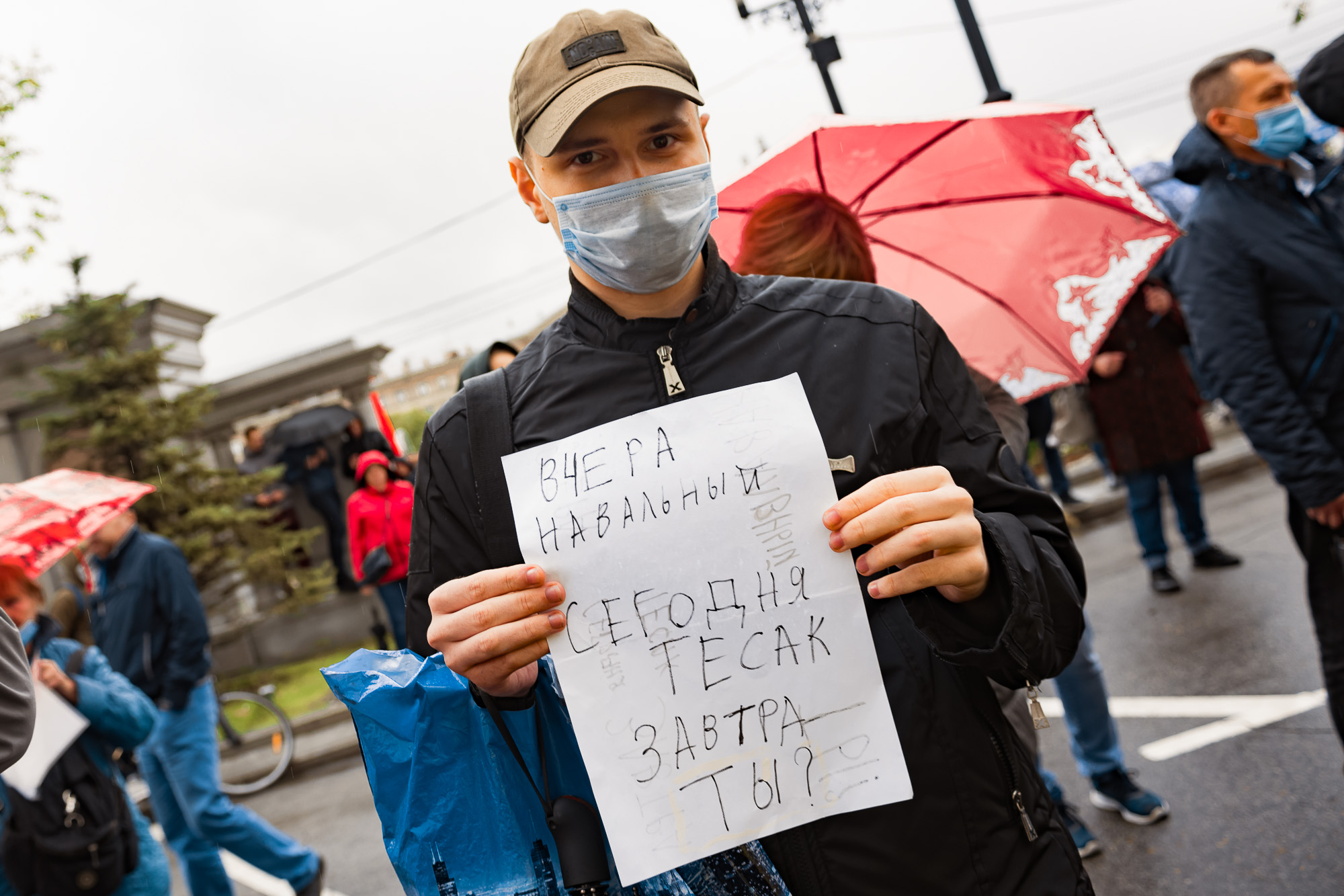 – Да скоро все перестанут ходить. Смотрите, с каждым днём все меньше людей, – уверен участник митинга Евгений. У него одного плакат с вопросом "Кто убил Тесака?". – Навальный, Тесак, Фургал – все это жертвы путинского режима. Тесака довели до самоубийства, я так считаю. А Фургала и Навального Путин устраняет, потому что не любит всю оппозицию. Среди моих знакомых вот все поддерживают, но ходит мало кто. Одни ходили, но на штраф попали. Кто-то просто никогда не ходил и не будет. А такая музыка – да глупости. Люди сами перестанут.