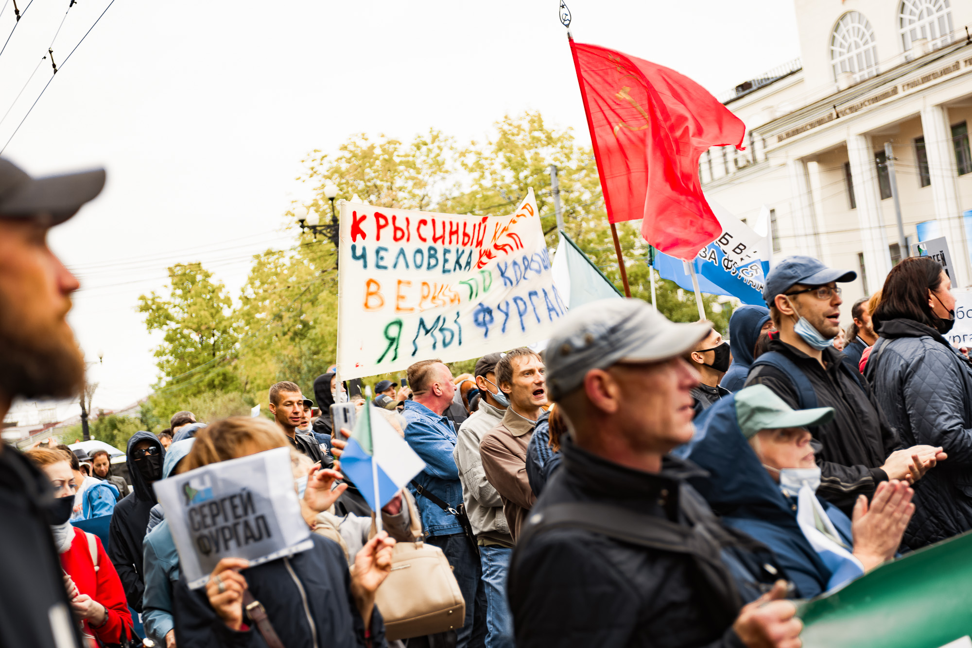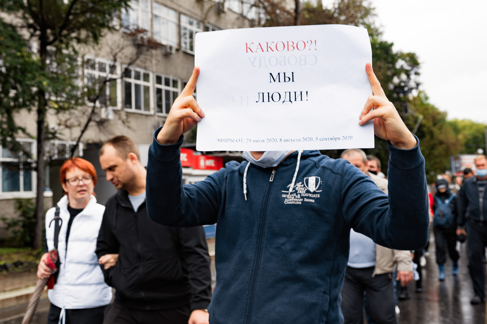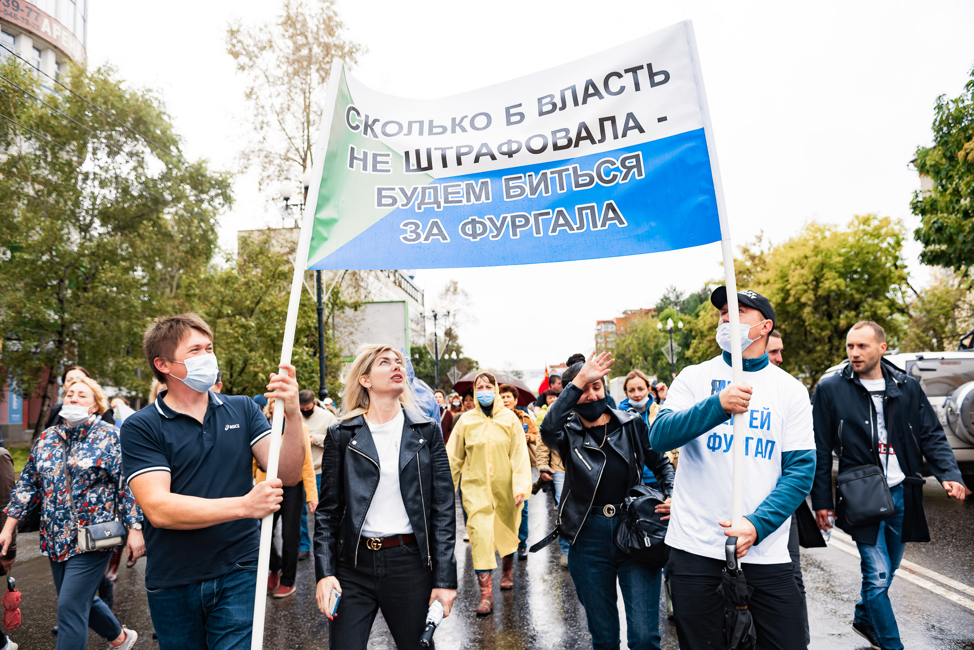 В Хабаровске 11-ю субботу подряд прошла массовая протестная акция. Это был 71-й день протестов с момента задержания бывшего губернатора края Сергея Фургала. Несмотря на назначенный недавно одному из протестующих штраф в 150 тысяч рублей, несколько тысяч человек снова собрались на центральной городской площади. На штраф скидываются коллективно.