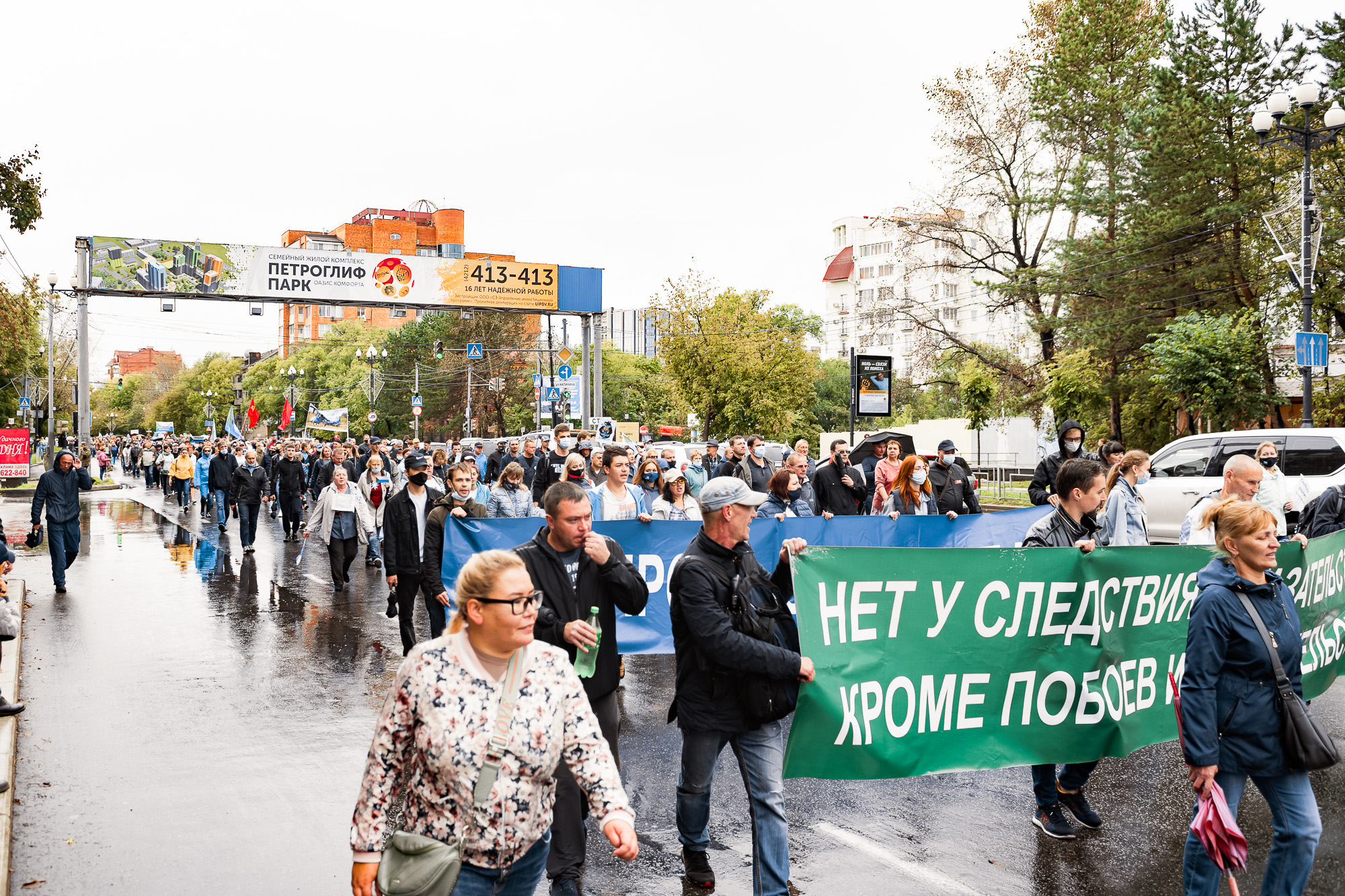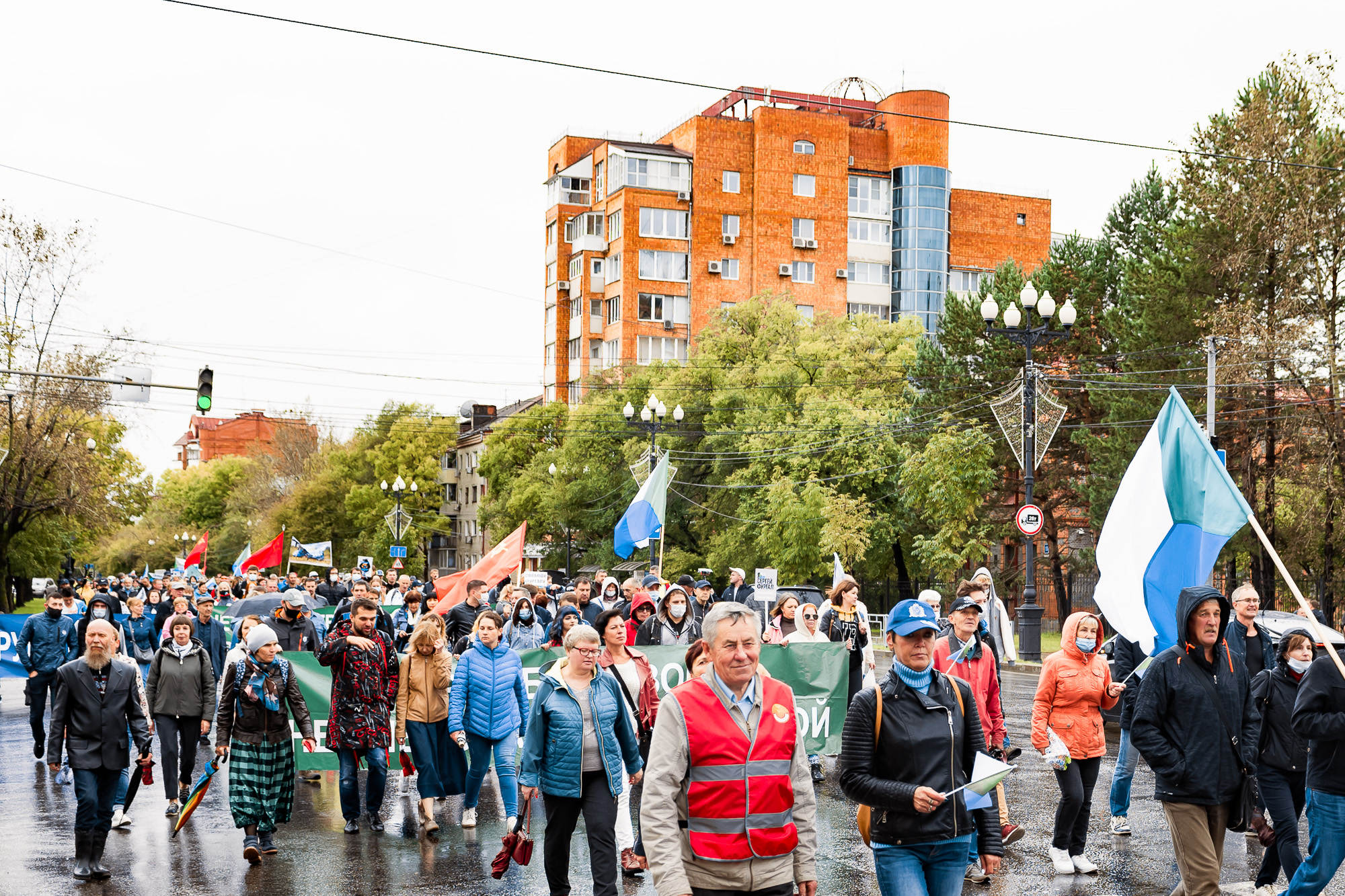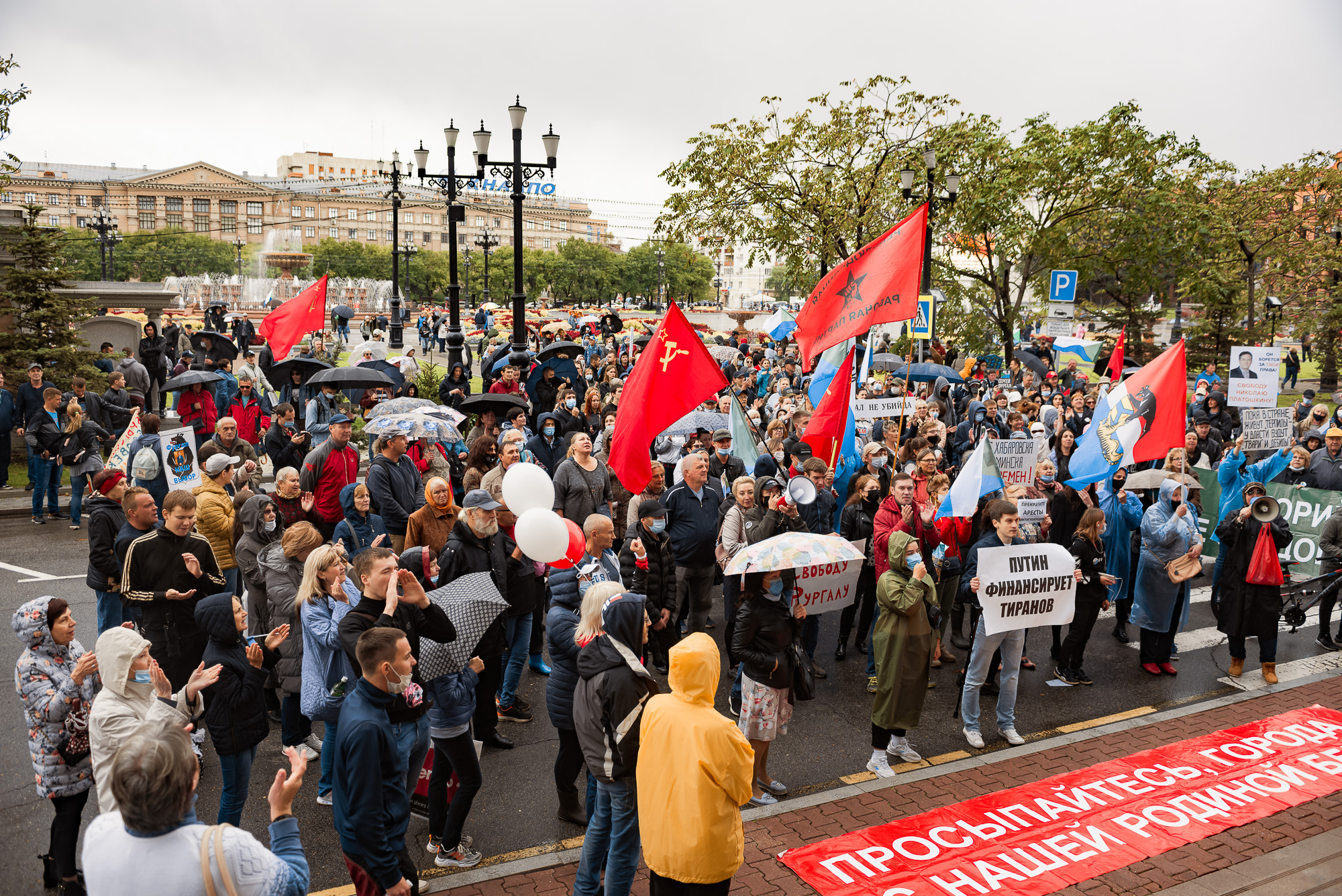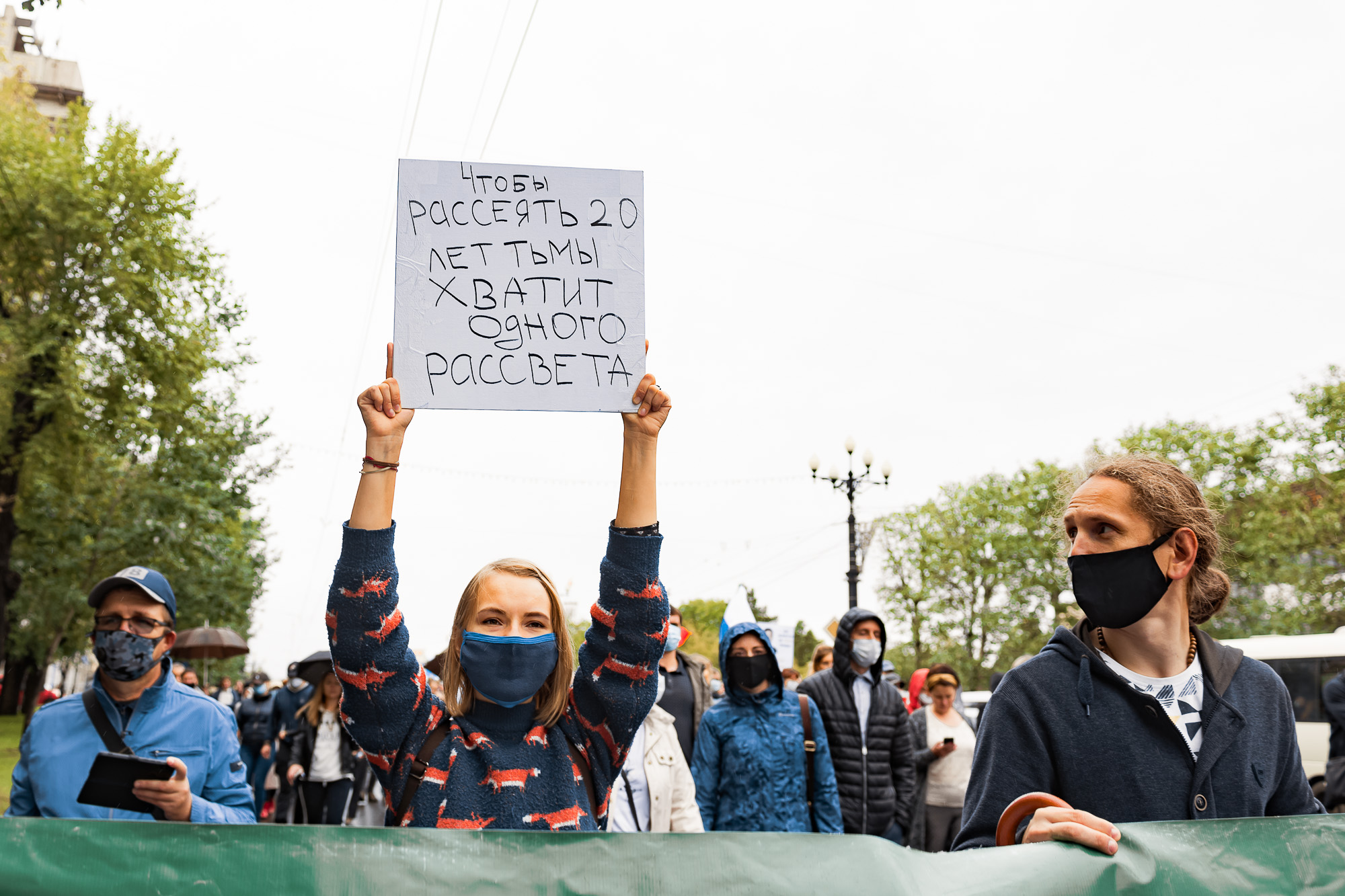 В Хабаровске 11-ю субботу подряд прошла массовая протестная акция. Это был 71-й день протестов с момента задержания бывшего губернатора края Сергея Фургала. Несмотря на назначенный недавно одному из протестующих штраф в 150 тысяч рублей, несколько тысяч человек снова собрались на центральной городской площади. На штраф скидываются коллективно.