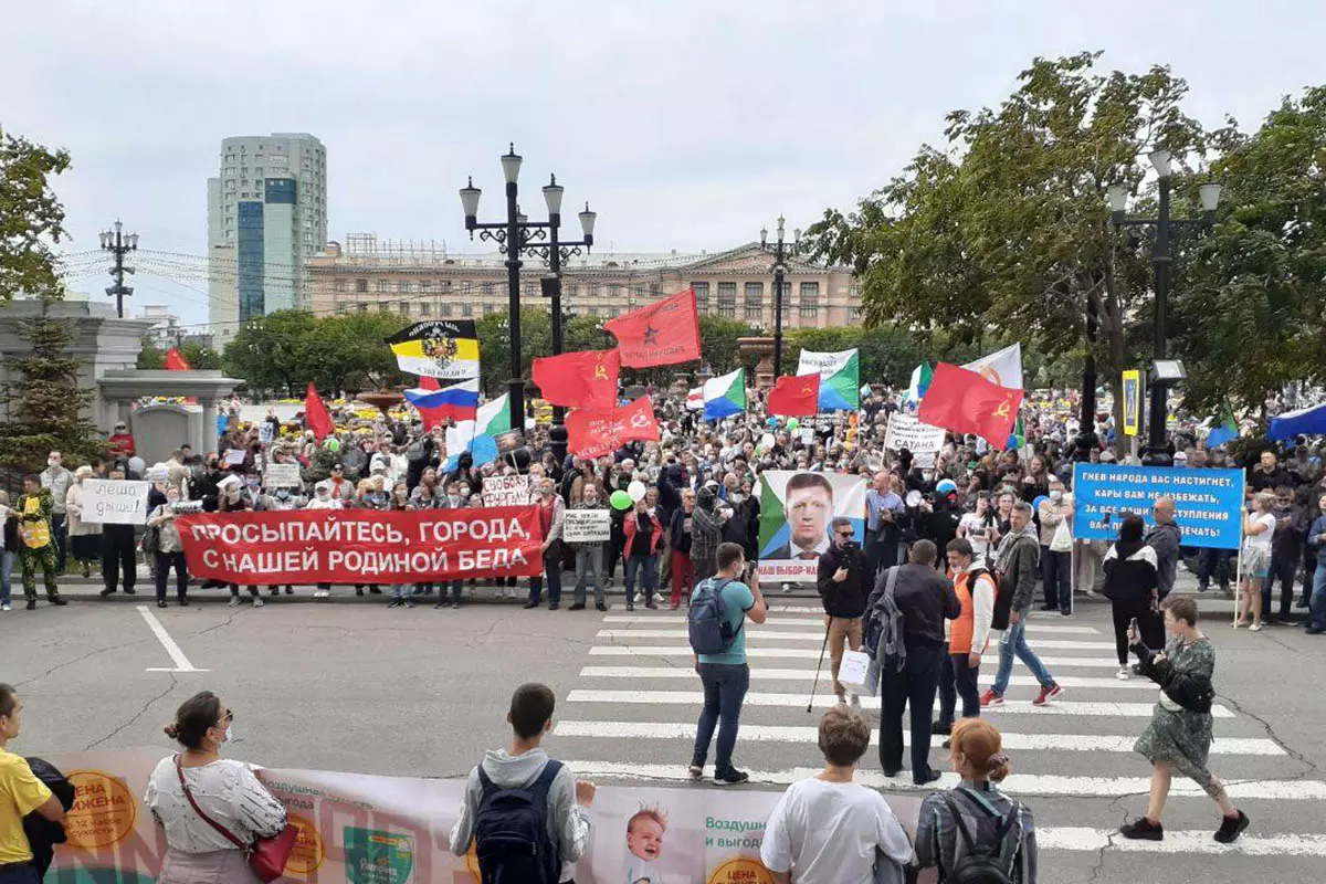 В это время в Хабаровске до сих пор продолжаются акции в поддержку экс-губернатора. Жители города уже больше семидесяти дней подряд выходят с плакатами на улицы. «Свободу!», «Фургал — наш выбор», «Я/МЫ Сергей Фургал», — скандируют собравшиеся. Акции проходят мирно — полиция практически не задерживает и не разгоняет протестующих. Однако число протестующих заметно уменьшилось с лета: например, на акцию 18 июля вышло по разным оценкам от 50 до 80 тысяч человек, а в субботу 19 сентября на митинге собралось всего лишь 600 человек.