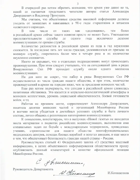 ГЛАВНОЕ ВОЕННО-ПОЛИТИЧЕСКОЕ УПРАВЛЕНИЕ ВС РФ ОТВЕЧАЕТ НА ЗАПРОС «НОВОЙ ГАЗЕТЫ»