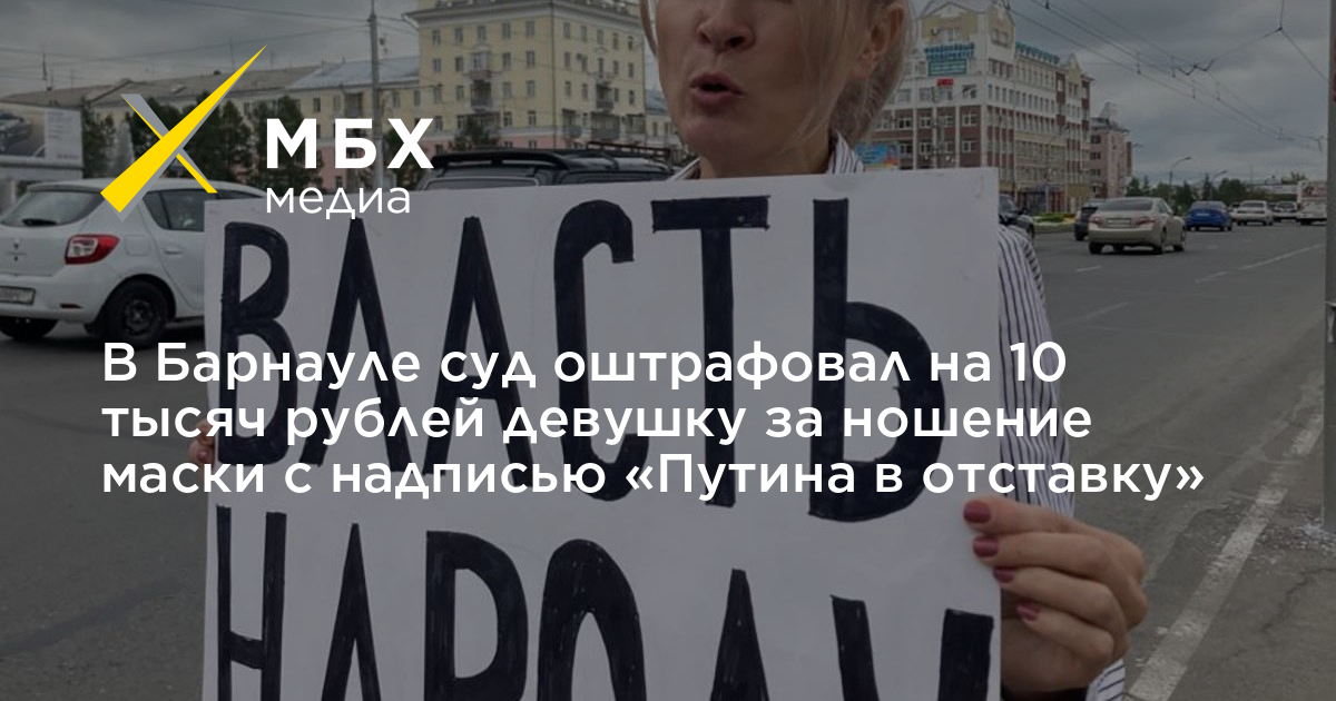 В Барнауле суд оштрафовал на 10 тысяч рублей девушку за ношение маски с надписью «Путина в отставку»