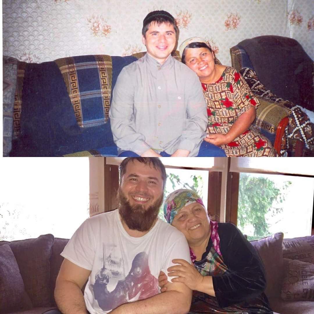 Муса Ломаев с мамой за день до задержания и в 2019 году. Фото: личный архив