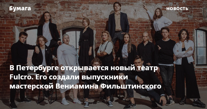 Выпускники мастерской Вениамина Фильштинского, который ранее учил Константина Хабенского и Ксению Раппопорт, осенью 2020 года запустят в Петербурге собственный театр Fulcro. Об этом сообщает журнал «Театр».