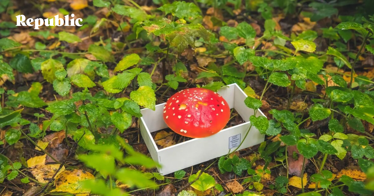 Накрапывал дождик, но компании все были только рады (да и опасность заражения коронавирусом на свежем воздухе меньше, чем в помещении). По лесу бродили долго и увлеченно, грибов не собирали, а с удовольствием помечали их как предметы искусства. Художник Роман Сакин очень кстати придумал «Карманную галерею»: в начале маршрута каждый посетитель мог взять небольшую рамочку-макет (четыре стены, окно и дверь) и по ходу прогулки поместить в нее любой объект живой или неживой природы. Журналисты и арт-критики выбирали в основном мухоморы, хотя попадались и подберезовики, но, строго говоря, кроме грибов в рамочку мало что влезало.