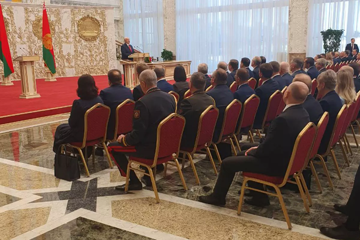 На самой церемонии перед Александром Лукашенко в зале сидело несколько сот человек, которым он рассказывал об убедительной и судьбоносной победе на выборах, о поддержке граждан, о том, что белорусы не дети, а сознательная нация. Примечательно, что все предыдущие свои выступления Лукашенко строил как раз на образе сложных взаимоотношений родителя (президента) и неразумных, но любимых детей (граждан). Сейчас спичрайтеры решили, видимо, что надо сделать акцент на осознанном и взрослом выборе, который якобы сделали белорусы.