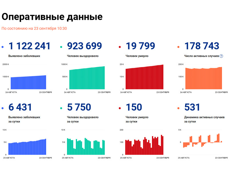 Если в начале сентября количество выявляемых случаев колебалось в значениях от 5 тыс. до 5,5 тысяч, то сейчас эта цифра стабильно выше 6000. Всего в стране уже 1 122 241 эпизод заболевания.
