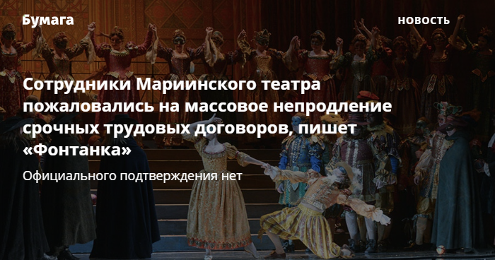 Сотрудники Мариинки жалуются на непродление договоров