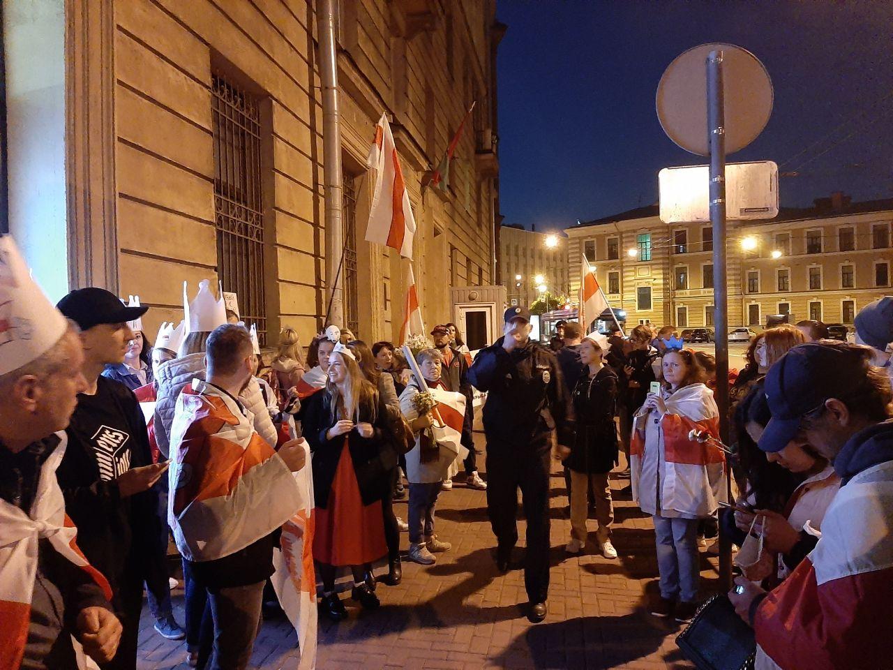 Параллельно в Петербурге проходит акция в поддержку белорусов и против тайной инаугурации Лукашенко под названием «И кто тут крыса?».