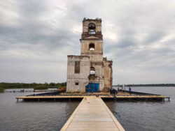 Высокие руины каменной башни одиноко поднимаются над гладью воды. Это остатки церкви Рождества Христова в Крохино, символ сотен затопленных при строительстве Волго-Балтийского водного пути поселений Белозерья. Храм-маяк должен был упасть еще лет десять назад, но за консервацию уникального памятника взялась группа волонтеров. Проект, в который не верили ни местные власти, ни РПЦ, близится к завершению, и корреспондент Север.Реалии присоединился к последней в этом году волонтерской экспедиции.