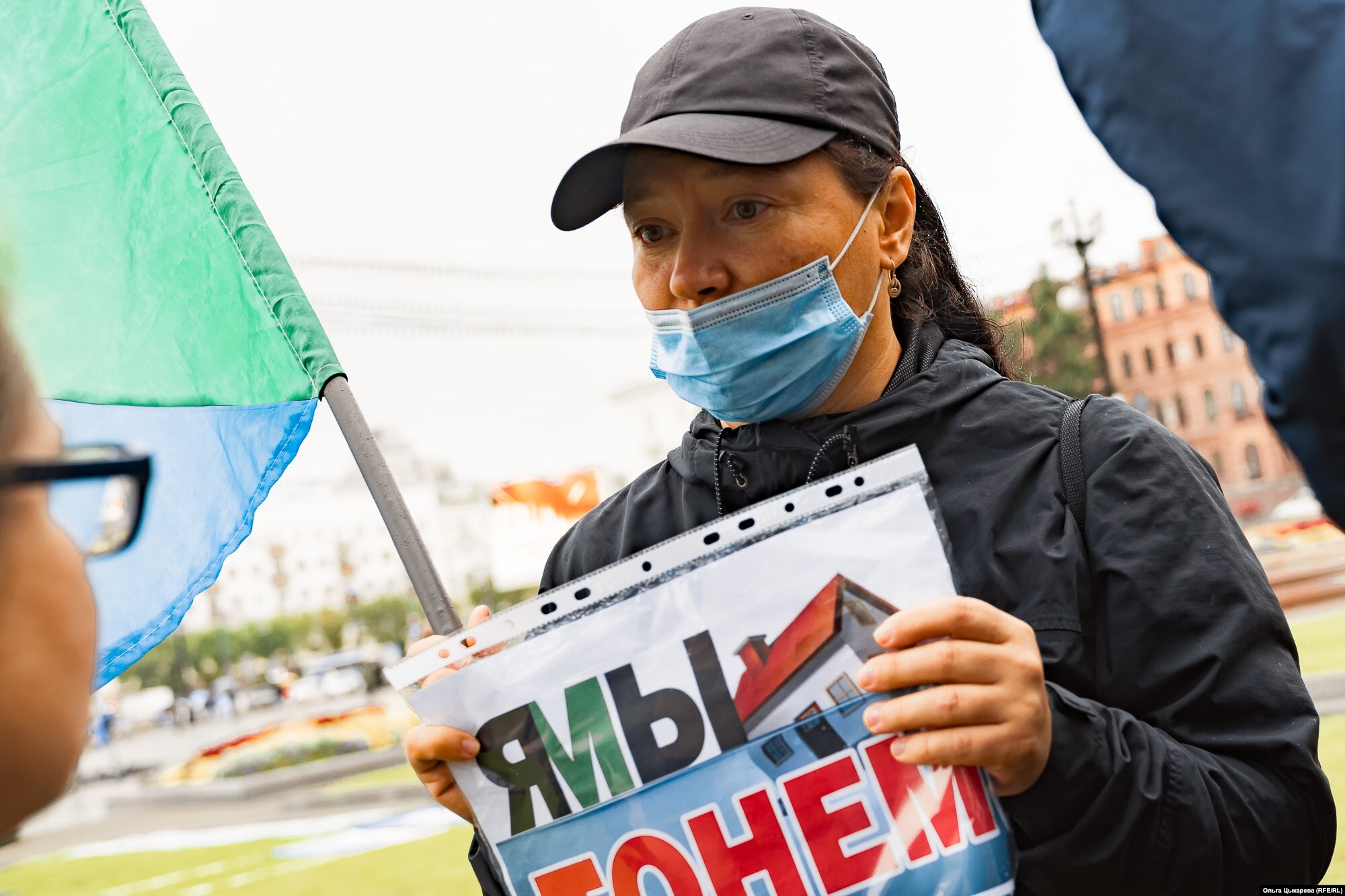 В этих селах традиционно много дачников или тех, кто переселился из Хабаровска. До города действительно близко. Поэтому подтопленцы решили вынести свои проблемы на традиционный "профургальский" митинг. В субботу около десятка активистов прошлись в шествии с наклейками "Я/МЫ тонем".