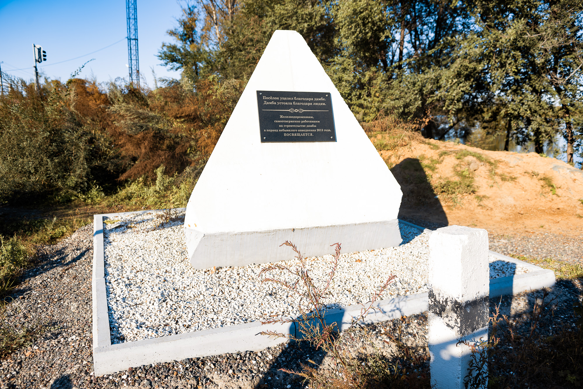 Пока удается сдерживать паводок в соседнем селе Тельмана, которое в 2013 году еле удалось спасти – так гласит табличка в память о паводке.