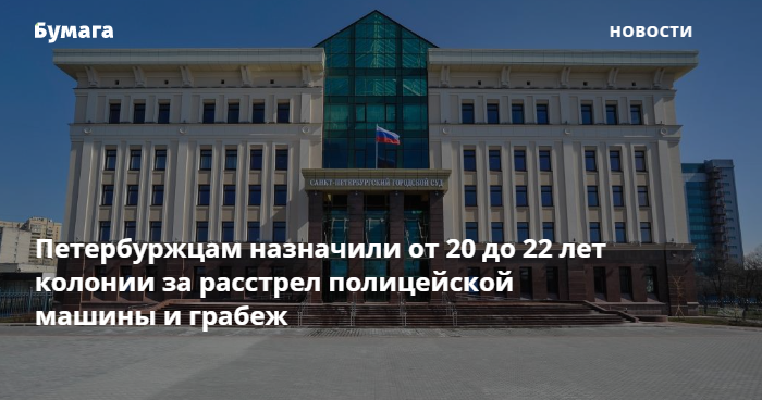 Суд в Петербурге на основании вердикта присяжных приговорил трех горожан к сроку до 22 лет колонии строгого режима по делу о расстреле автомобиля ОМОН и грабеже. Об этом сообщает объединенная пресс-служба судов города.